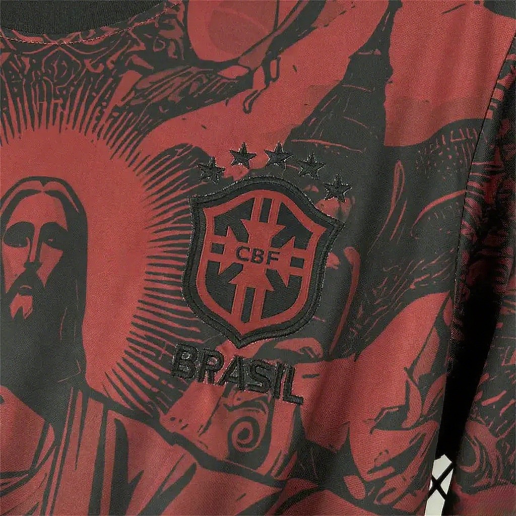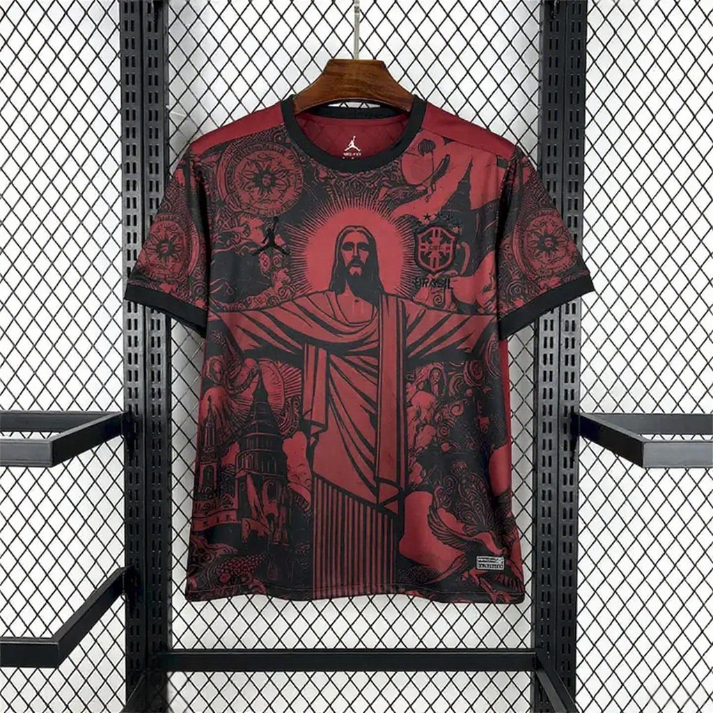 Brazil 25-26 Jordan Black Jesus Statue Red Special Jersey - Fans Version