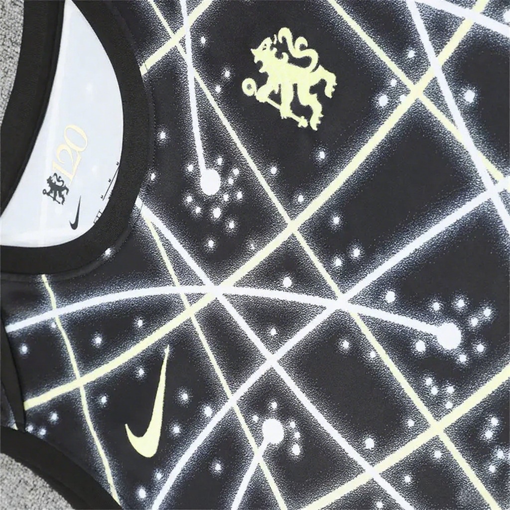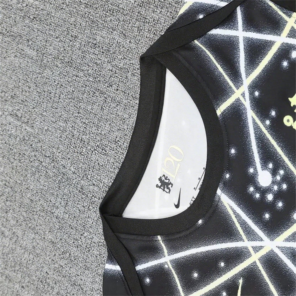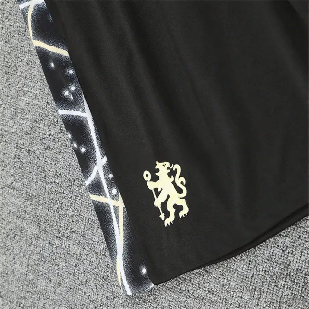 Chelsea 25-26 Vest Training Set - Yellow Fluorescent Rays Black Vest & Black Shorts