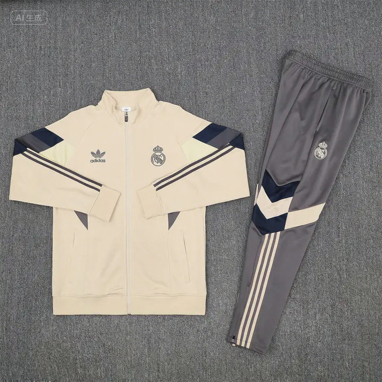 Real Madrid 25-26 Throwback Jacket Training Tracksuit - Off-white Jackets & Grey Pants