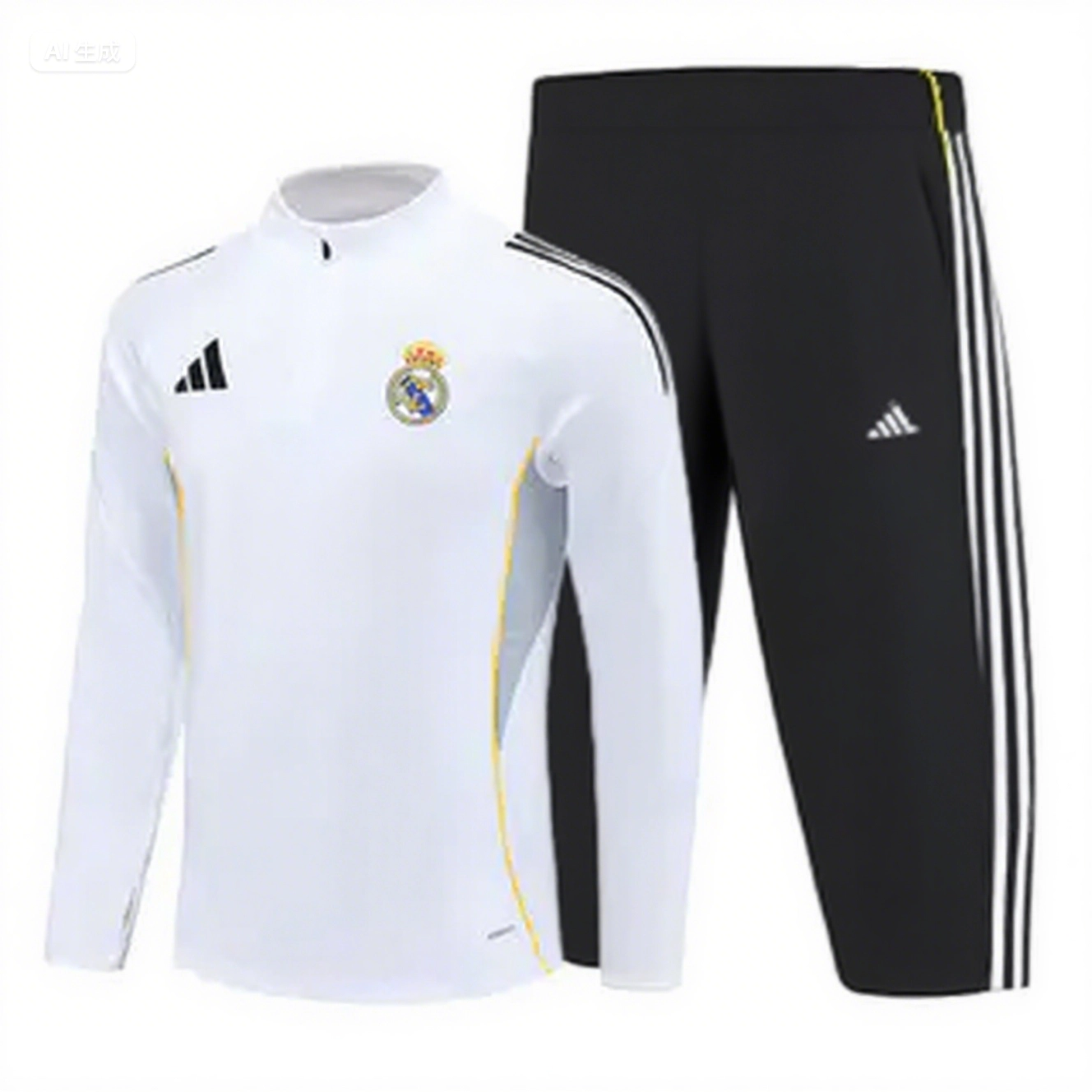 Real Madrid 25-26 Long Sleeve Training Set - Yellow Line White Top and Black Shorts