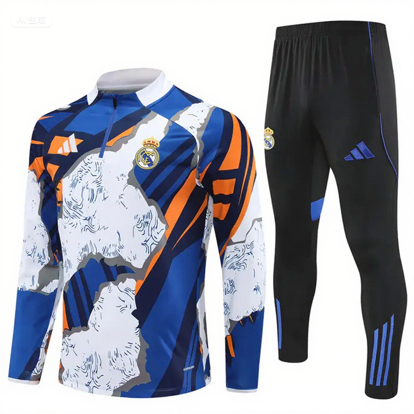 - Real Madrid 25-26 Kids Long Sleeve Training Set - Yellow. White and Blue Camouflage Top and Black Pants