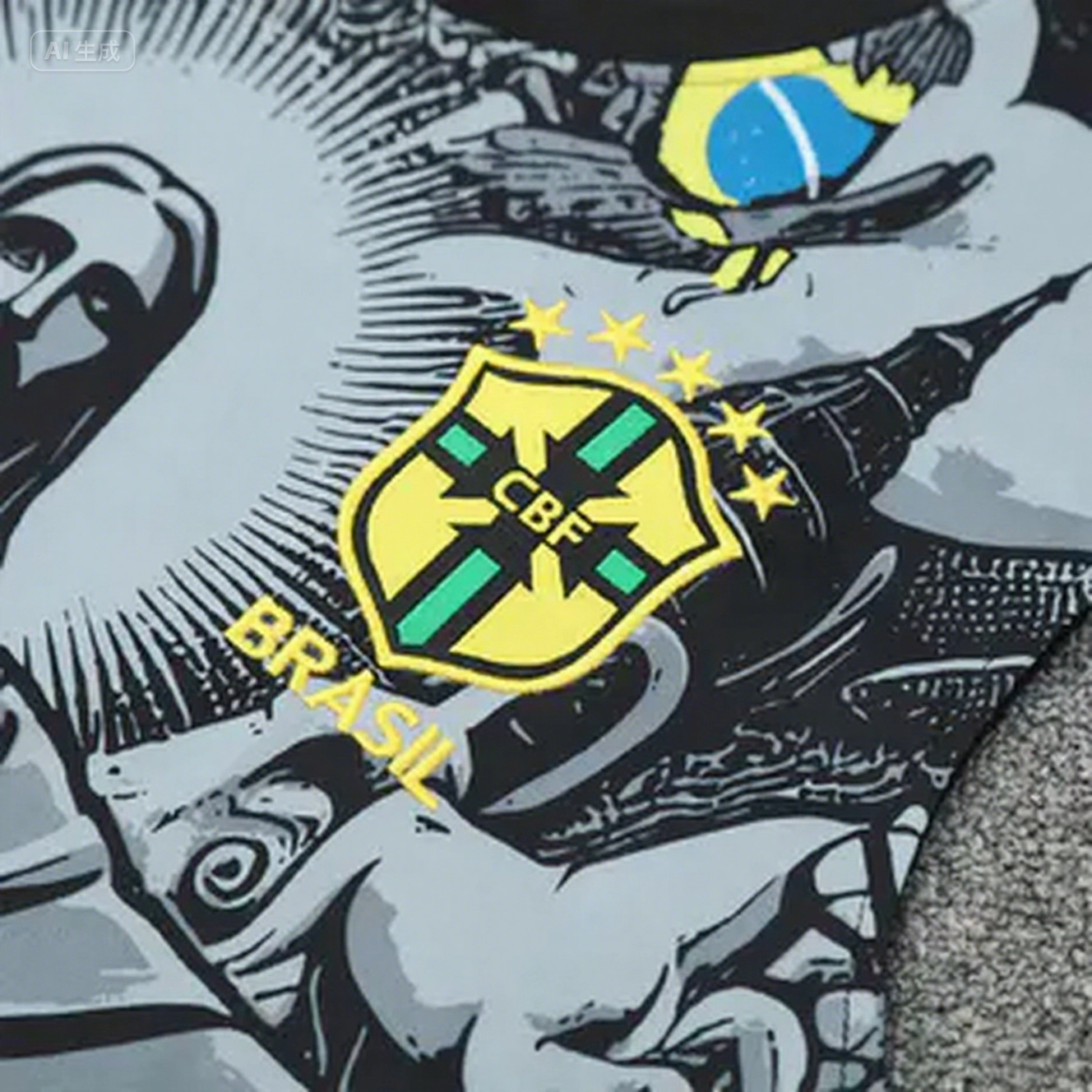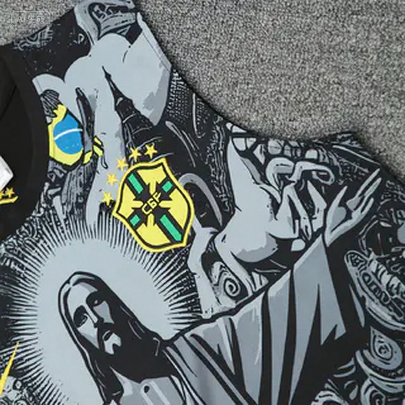 - Brazil 25-26 Gray Jesus Statue Vest Training Set - Gray Vest & Black Shorts