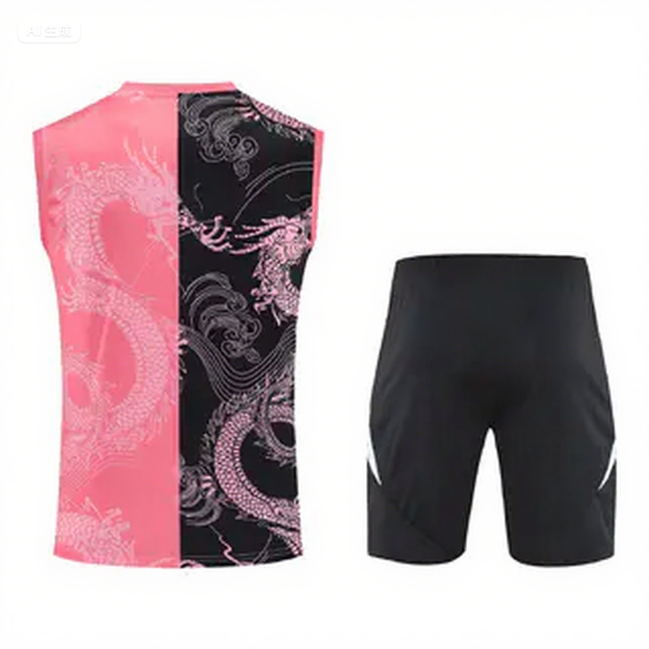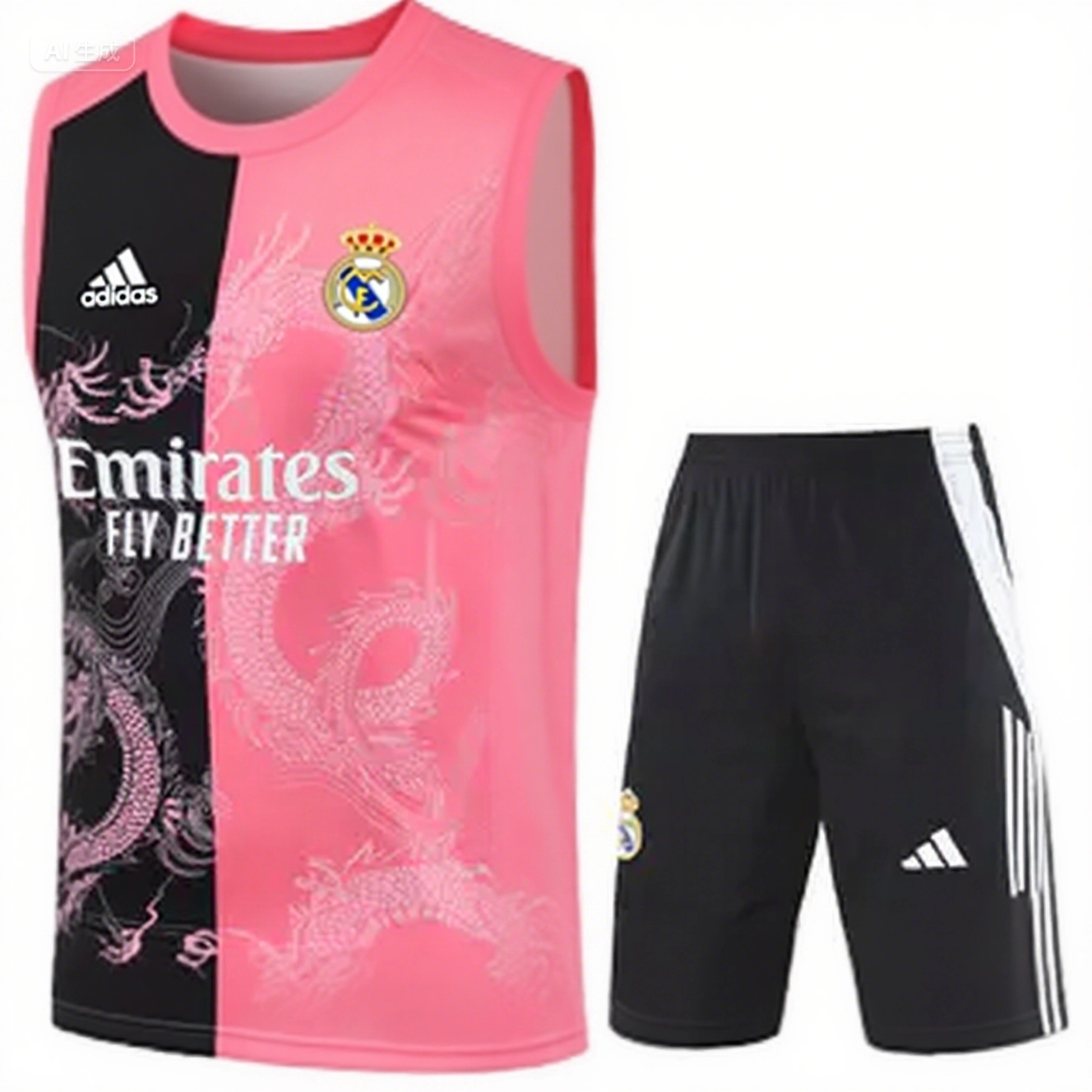 - Real Madrid 25-26 Vest Training Set - Pink-Black Dragon Vest & Black-White Shorts