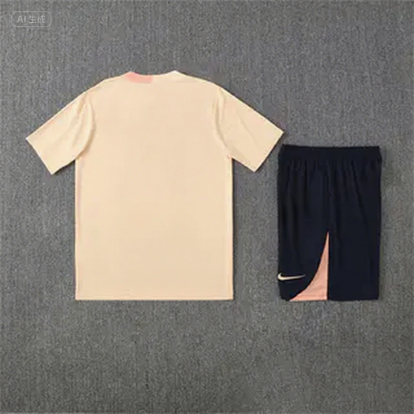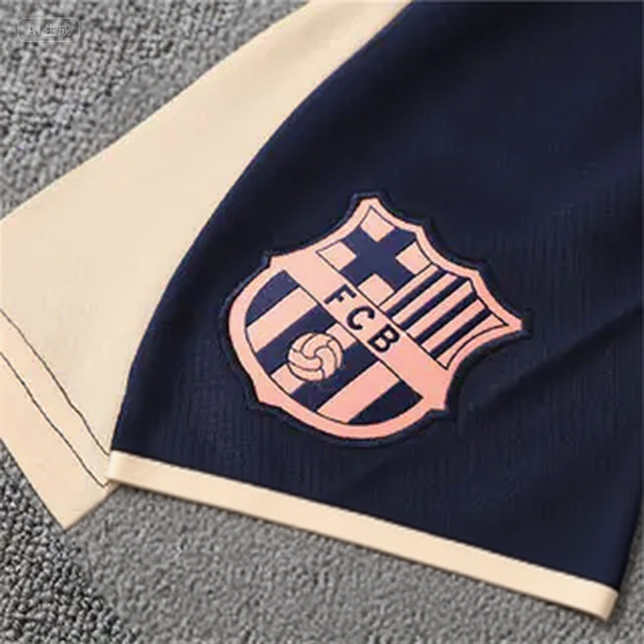 - Barcelona 25-26 Kids Short-Sleeve Training Set - Beige Top & Blue Shorts