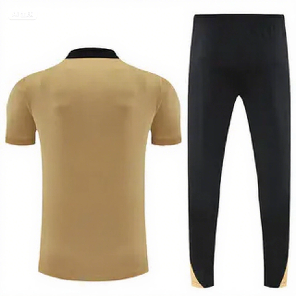 Barcelona 25-26 POLO Short-Sleeve Training Set - Light Brown Top and Black Pants
