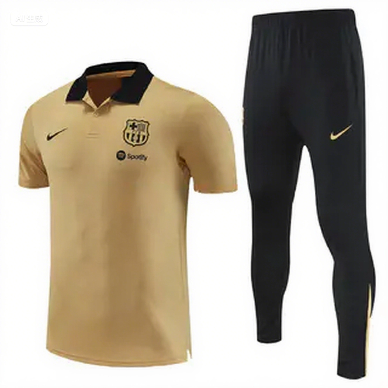 - Barcelona 25-26 POLO Short-Sleeve Training Set - Light Brown Top and Black Pants